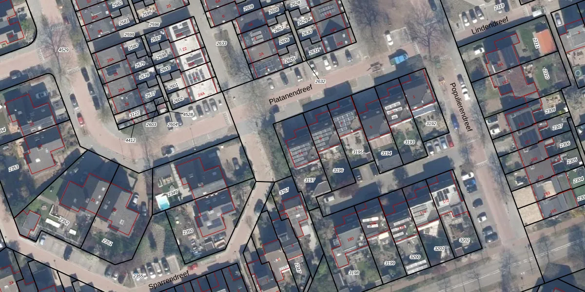 Gebruik de zoekbalk of klik op een perceel voor informatie over de adressen binnen dit perceel.