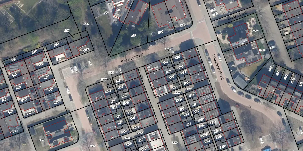 Gebruik de zoekbalk of klik op een perceel voor informatie over de adressen binnen dit perceel.