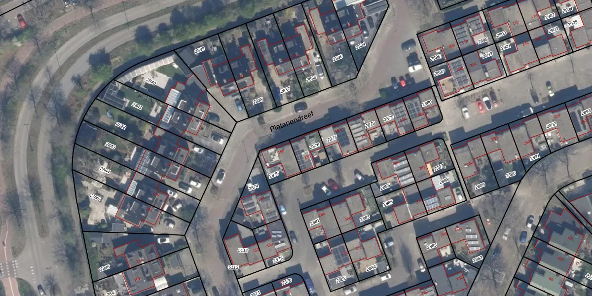 Gebruik de zoekbalk of klik op een perceel voor informatie over de adressen binnen dit perceel.