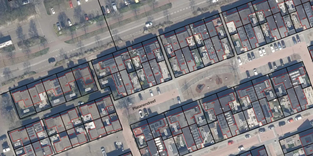 Gebruik de zoekbalk of klik op een perceel voor informatie over de adressen binnen dit perceel.