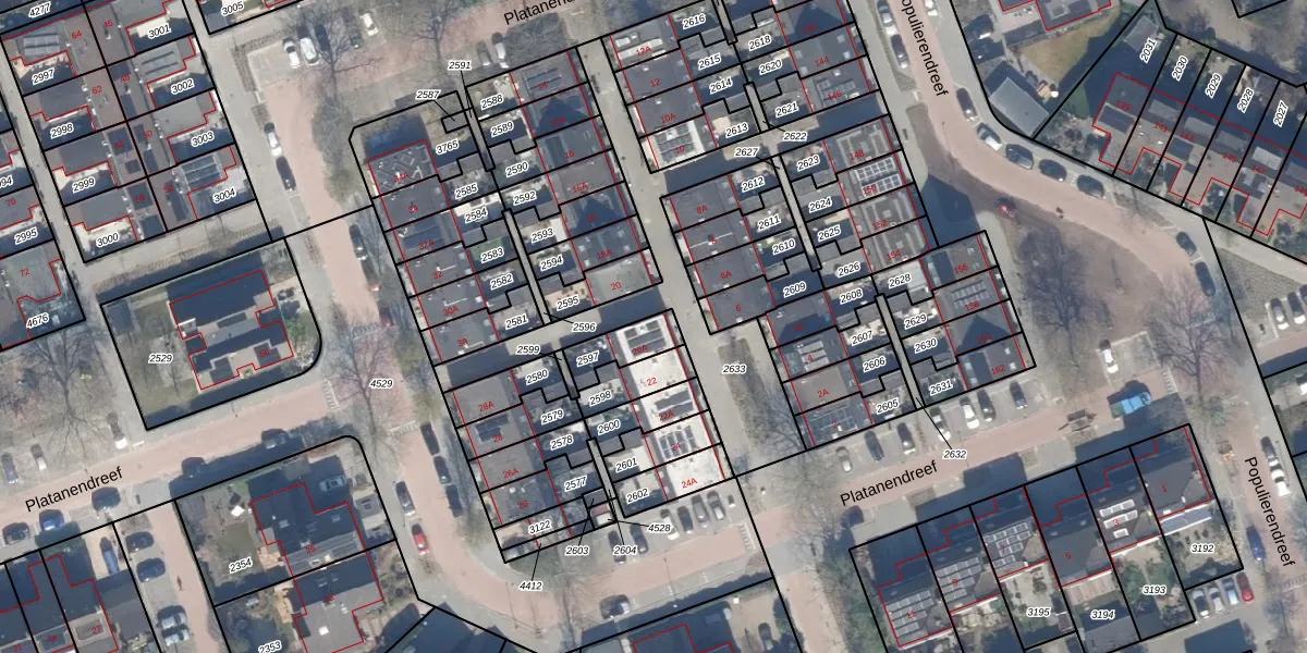 Gebruik de zoekbalk of klik op een perceel voor informatie over de adressen binnen dit perceel.
