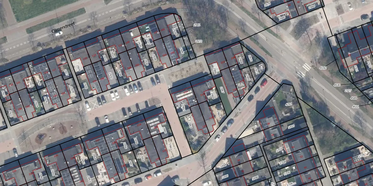 Gebruik de zoekbalk of klik op een perceel voor informatie over de adressen binnen dit perceel.