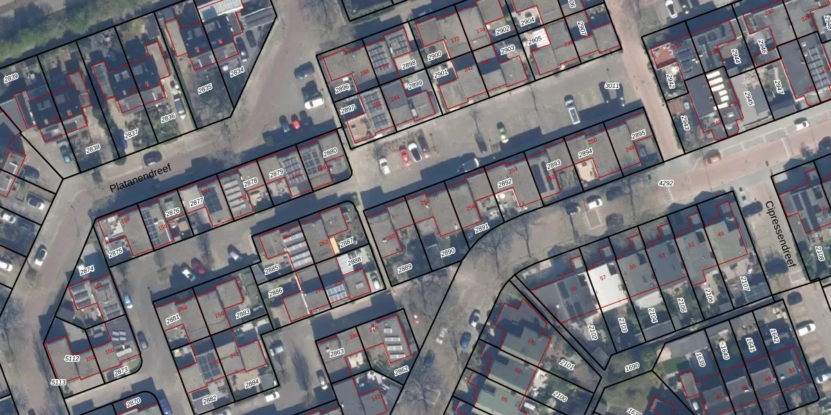 Het perceel waarop Platanendreef 258 staat heeft een oppervlakte van 196 m². Dit is een middelgroot perceel. De perceeloppervlakte wordt geregistreerd door het Kadaster. Gedetailleerde informatie over de maten van dit perceel kunt u vinden in het rapport Kadastrale kaart met maatvoering van Platanendreef 258.