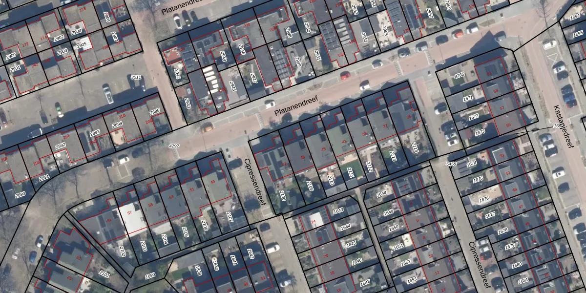 Het perceel waarop Platanendreef 45 staat heeft een oppervlakte van 210 m². Dit is een middelgroot perceel. De perceeloppervlakte wordt geregistreerd door het Kadaster. Gedetailleerde informatie over de maten van dit perceel kunt u vinden in het rapport Kadastrale kaart met maatvoering van Platanendreef 45.