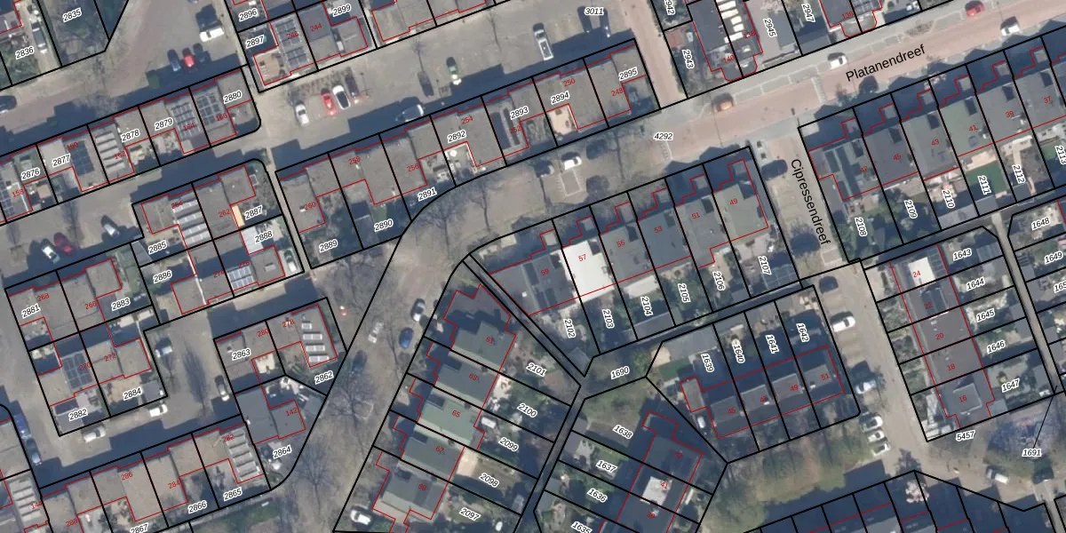 Platanendreef 59 is gelegen op kadastraal perceel VDG00K2102. Deze kadastrale aanduiding is uniek en wordt gebruikt door het Kadaster om eigendomsrechten en andere zakelijke rechten vast te leggen. Het perceel maakt onderdeel uit van de kadastrale gemeente Vlaardingen.