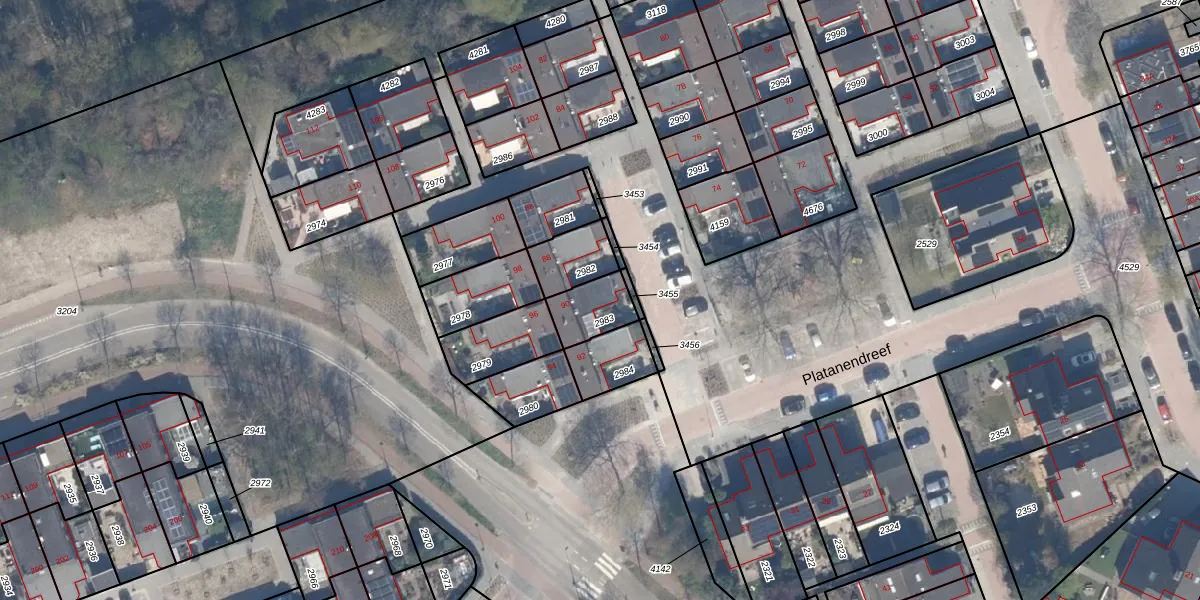 Gebruik de zoekbalk of klik op een perceel voor informatie over de adressen binnen dit perceel.