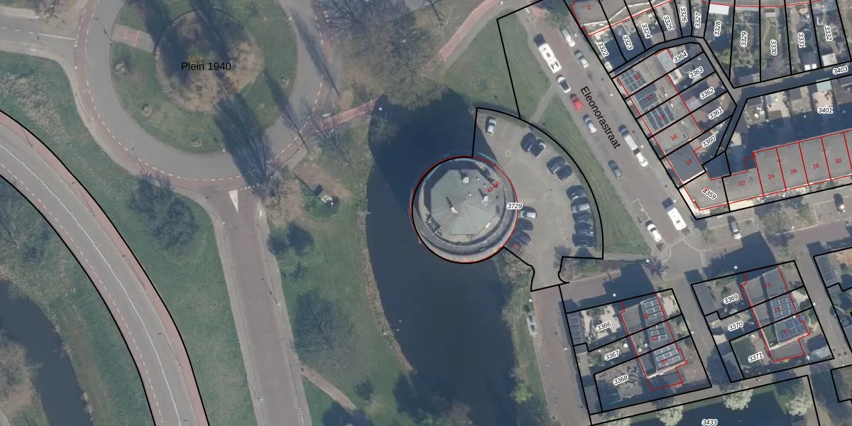Het perceel waarop Plein 1940 49 staat heeft een oppervlakte van 1181 m². Dit is een zeer groot perceel. De perceeloppervlakte wordt geregistreerd door het Kadaster. Gedetailleerde informatie over de maten van dit perceel kunt u vinden in het rapport Kadastrale kaart met maatvoering van Plein 1940 49.