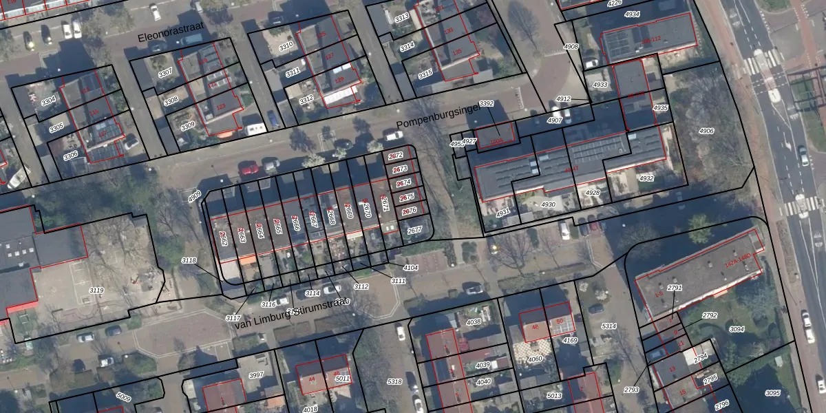 Gebruik de zoekbalk of klik op een perceel voor informatie over de adressen binnen dit perceel.