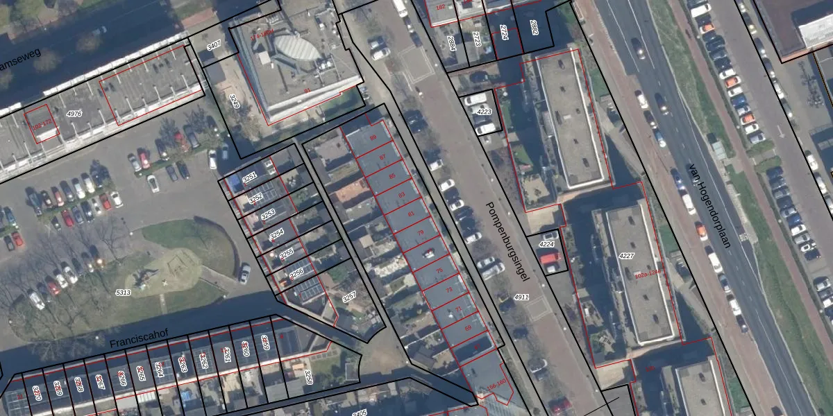Pompenburgsingel 81 is gelegen op kadastraal perceel VDG00G3405. Deze kadastrale aanduiding is uniek en wordt gebruikt door het Kadaster om eigendomsrechten en andere zakelijke rechten vast te leggen. Het perceel maakt onderdeel uit van de kadastrale gemeente Vlaardingen.