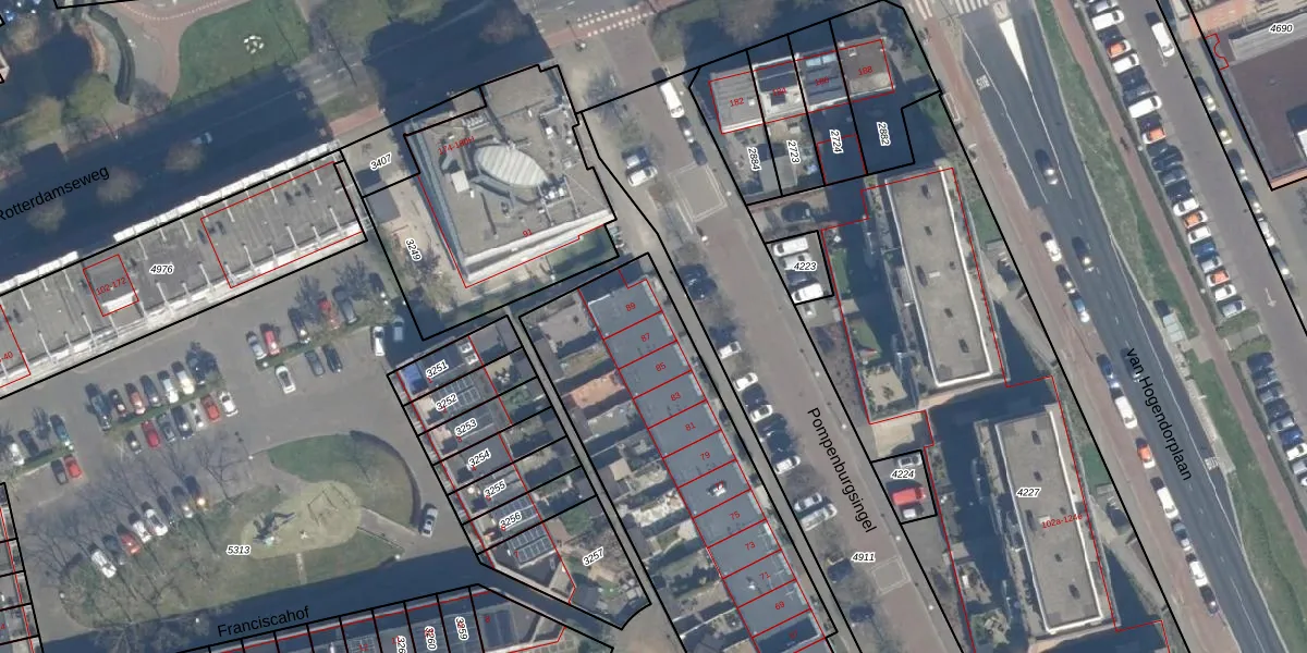 Pompenburgsingel 87 is gelegen op kadastraal perceel VDG00G3405. Deze kadastrale aanduiding is uniek en wordt gebruikt door het Kadaster om eigendomsrechten en andere zakelijke rechten vast te leggen. Het perceel maakt onderdeel uit van de kadastrale gemeente Vlaardingen.