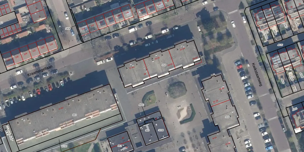 Het adres is gelegen op perceel 958 in de sectie K en de kadastrale gemeente Vlaardingen. De kadastrale aanduiding is aldus VDG00-K-958. Het perceel is 800 m² groot. Dat is kleiner dan de gemiddelde perceeloppervlakte in Vlaardingen, dat op 1372,24 m² ligt. Het grootste perceel in de kadastrale gemeente is 1,02 km². Het kleinste perceel heeft een oppervlakte van 0 m². Op het perceel zijn 17 adressen aanwezig. De laatste wijziging in het de Basisregistratie Kadaster (BRK) was op 13-05-2008.