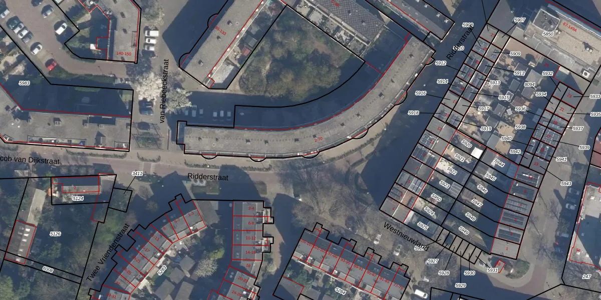 Het perceel waarop Ridderstraat 22 staat heeft een oppervlakte van 2905 m². Dit is een zeer groot perceel. De perceeloppervlakte wordt geregistreerd door het Kadaster. Gedetailleerde informatie over de maten van dit perceel kunt u vinden in het rapport Kadastrale kaart met maatvoering van Ridderstraat 22.
