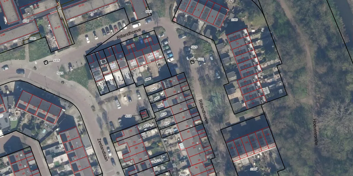 Rillandhoeve 20 is gelegen op kadastraal perceel VDG00K4443. Deze kadastrale aanduiding is uniek en wordt gebruikt door het Kadaster om eigendomsrechten en andere zakelijke rechten vast te leggen. Het perceel maakt onderdeel uit van de kadastrale gemeente Vlaardingen.