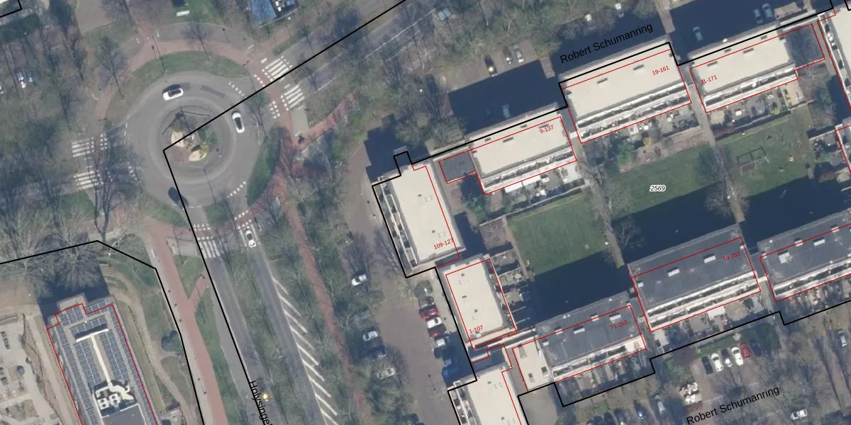 Het perceel waarop Robert Schumanring 117 staat heeft een oppervlakte van 8070 m². Dit is een zeer groot perceel. De perceeloppervlakte wordt geregistreerd door het Kadaster. Gedetailleerde informatie over de maten van dit perceel kunt u vinden in het rapport Kadastrale kaart met maatvoering van Robert Schumanring 117.