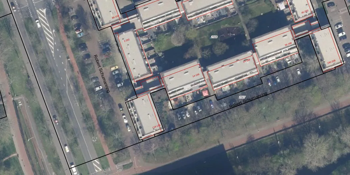 Het perceel waarop Robert Schumanring 142 staat heeft een oppervlakte van 7710 m². Dit is een zeer groot perceel. De perceeloppervlakte wordt geregistreerd door het Kadaster. Gedetailleerde informatie over de maten van dit perceel kunt u vinden in het rapport Kadastrale kaart met maatvoering van Robert Schumanring 142.