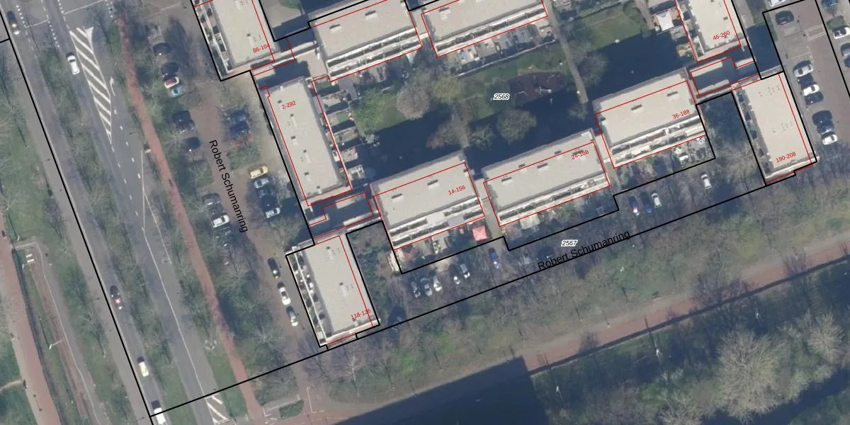 Het perceel waarop Robert Schumanring 148 staat heeft een oppervlakte van 7710 m². Dit is een zeer groot perceel. De perceeloppervlakte wordt geregistreerd door het Kadaster. Gedetailleerde informatie over de maten van dit perceel kunt u vinden in het rapport Kadastrale kaart met maatvoering van Robert Schumanring 148.
