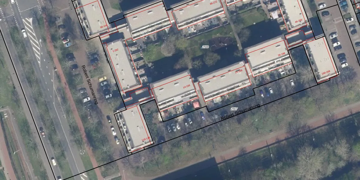 Het perceel waarop Robert Schumanring 152 staat heeft een oppervlakte van 7710 m². Dit is een zeer groot perceel. De perceeloppervlakte wordt geregistreerd door het Kadaster. Gedetailleerde informatie over de maten van dit perceel kunt u vinden in het rapport Kadastrale kaart met maatvoering van Robert Schumanring 152.