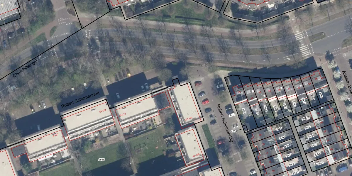 Het perceel waarop Robert Schumanring 173 staat heeft een oppervlakte van 8070 m². Dit is een zeer groot perceel. De perceeloppervlakte wordt geregistreerd door het Kadaster. Gedetailleerde informatie over de maten van dit perceel kunt u vinden in het rapport Kadastrale kaart met maatvoering van Robert Schumanring 173.