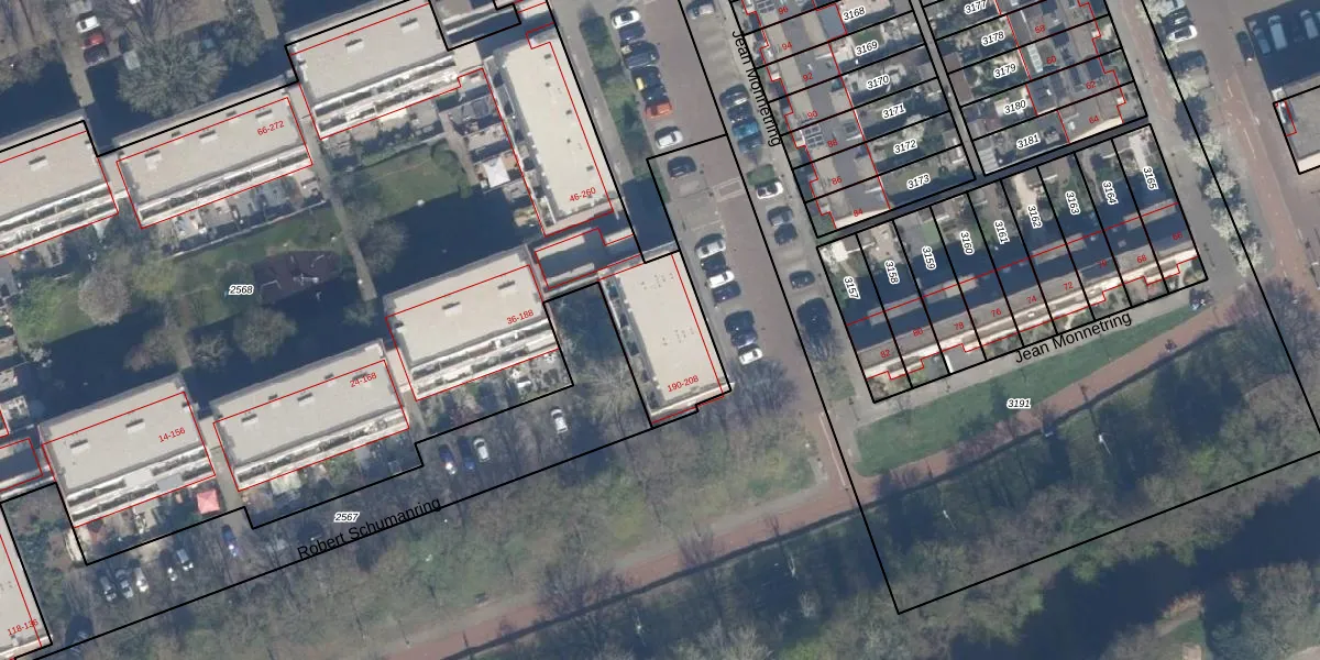 Het perceel waarop Robert Schumanring 194 staat heeft een oppervlakte van 7710 m². Dit is een zeer groot perceel. De perceeloppervlakte wordt geregistreerd door het Kadaster. Gedetailleerde informatie over de maten van dit perceel kunt u vinden in het rapport Kadastrale kaart met maatvoering van Robert Schumanring 194.