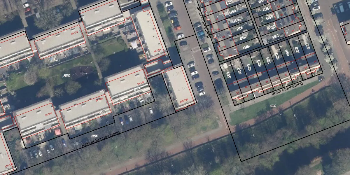 Het perceel waarop Robert Schumanring 204 staat heeft een oppervlakte van 7710 m². Dit is een zeer groot perceel. De perceeloppervlakte wordt geregistreerd door het Kadaster. Gedetailleerde informatie over de maten van dit perceel kunt u vinden in het rapport Kadastrale kaart met maatvoering van Robert Schumanring 204.