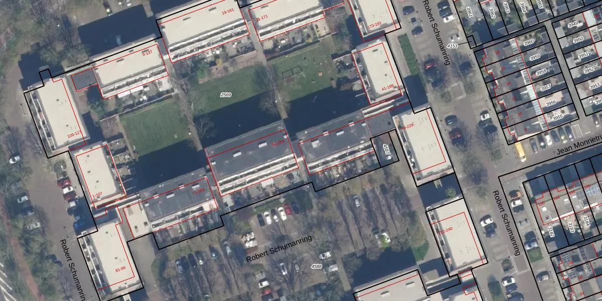 Het perceel waarop Robert Schumanring 229 staat heeft een oppervlakte van 8070 m². Dit is een zeer groot perceel. De perceeloppervlakte wordt geregistreerd door het Kadaster. Gedetailleerde informatie over de maten van dit perceel kunt u vinden in het rapport Kadastrale kaart met maatvoering van Robert Schumanring 229.