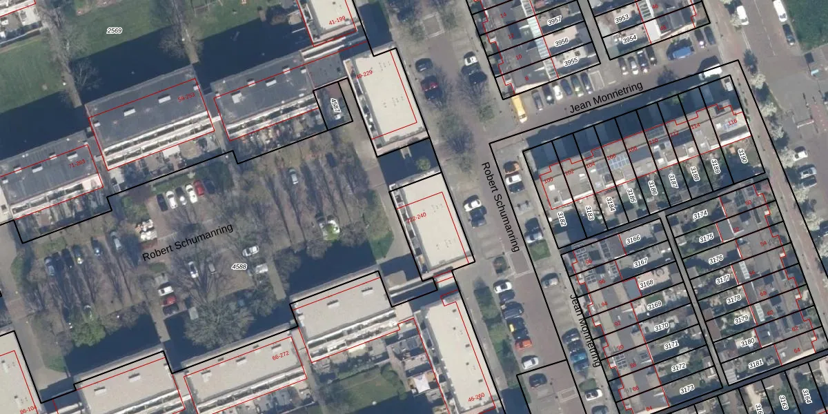 Het perceel waarop Robert Schumanring 234 staat heeft een oppervlakte van 7710 m². Dit is een zeer groot perceel. De perceeloppervlakte wordt geregistreerd door het Kadaster. Gedetailleerde informatie over de maten van dit perceel kunt u vinden in het rapport Kadastrale kaart met maatvoering van Robert Schumanring 234.