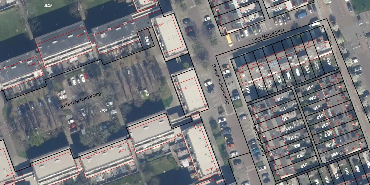 Het perceel waarop Robert Schumanring 236 staat heeft een oppervlakte van 7710 m². Dit is een zeer groot perceel. De perceeloppervlakte wordt geregistreerd door het Kadaster. Gedetailleerde informatie over de maten van dit perceel kunt u vinden in het rapport Kadastrale kaart met maatvoering van Robert Schumanring 236.