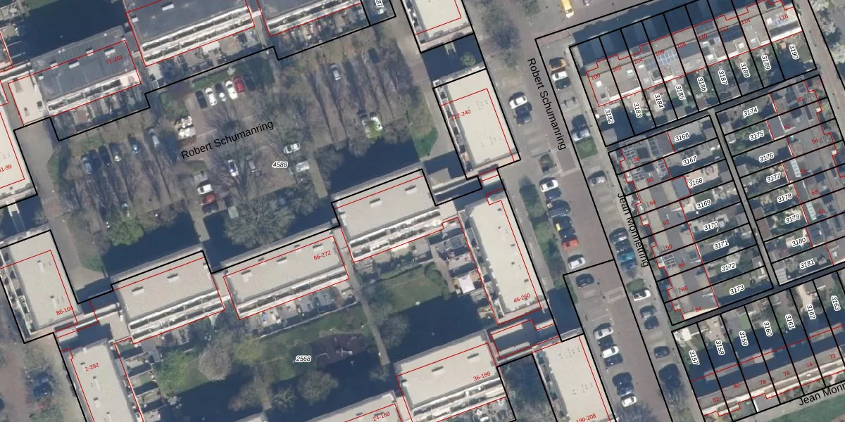 Het perceel waarop Robert Schumanring 244 staat heeft een oppervlakte van 7710 m². Dit is een zeer groot perceel. De perceeloppervlakte wordt geregistreerd door het Kadaster. Gedetailleerde informatie over de maten van dit perceel kunt u vinden in het rapport Kadastrale kaart met maatvoering van Robert Schumanring 244.