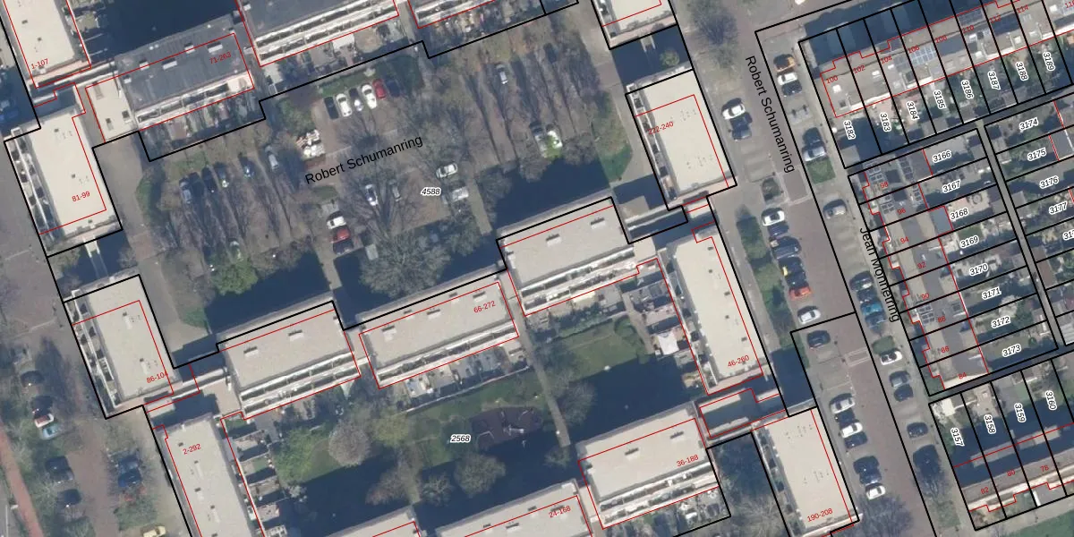 Het perceel waarop Robert Schumanring 256 staat heeft een oppervlakte van 7710 m². Dit is een zeer groot perceel. De perceeloppervlakte wordt geregistreerd door het Kadaster. Gedetailleerde informatie over de maten van dit perceel kunt u vinden in het rapport Kadastrale kaart met maatvoering van Robert Schumanring 256.