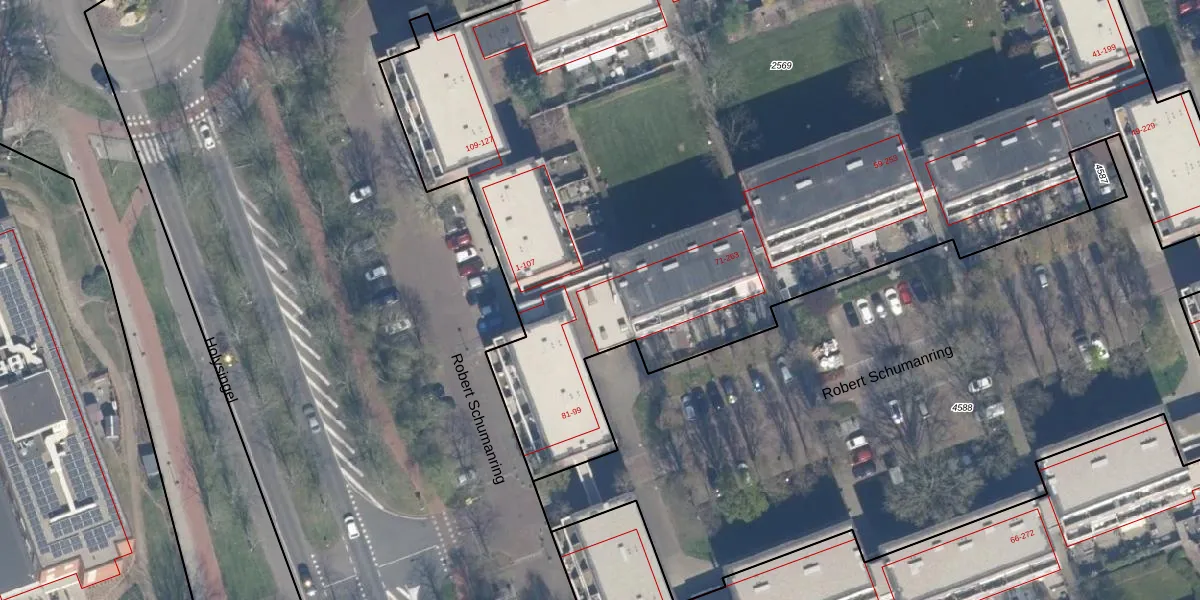 Het perceel waarop Robert Schumanring 79-B staat heeft een oppervlakte van 8070 m². Dit is een zeer groot perceel. De perceeloppervlakte wordt geregistreerd door het Kadaster. Gedetailleerde informatie over de maten van dit perceel kunt u vinden in het rapport Kadastrale kaart met maatvoering van Robert Schumanring 79-B.