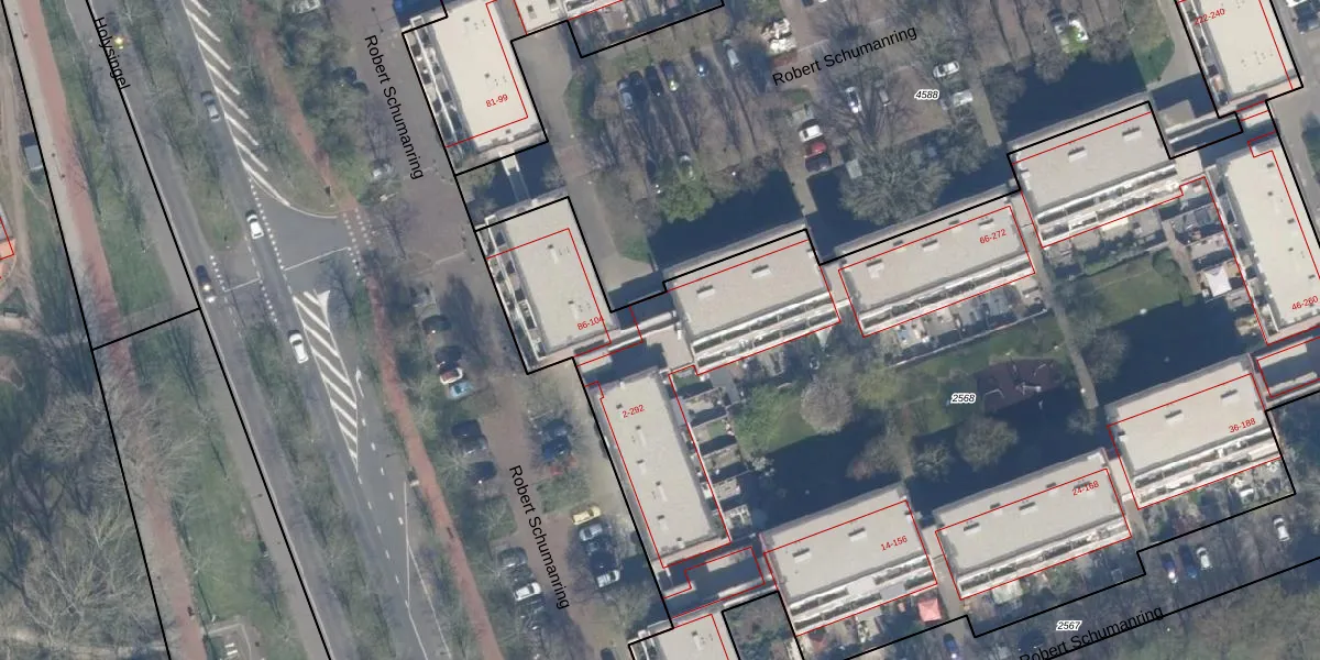 Robert Schumanring 84-D is gelegen op kadastraal perceel VDG00K2568. Deze kadastrale aanduiding is uniek en wordt gebruikt door het Kadaster om eigendomsrechten en andere zakelijke rechten vast te leggen. Het perceel maakt onderdeel uit van de kadastrale gemeente Vlaardingen.