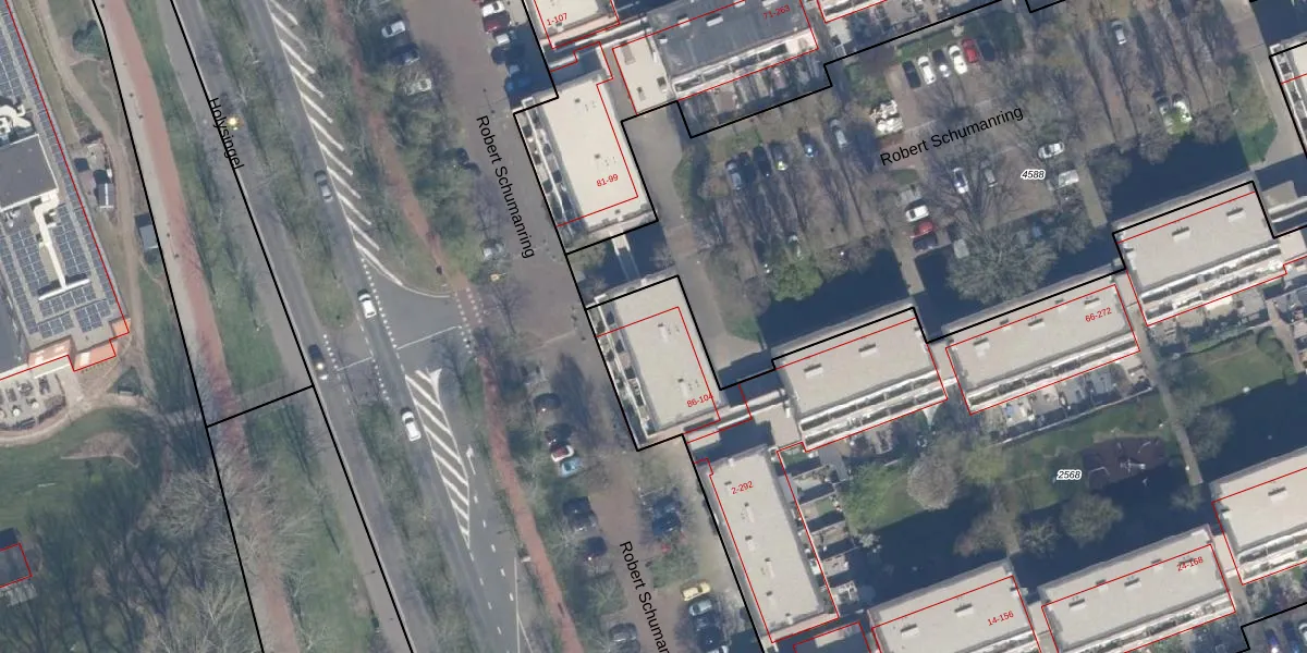 Robert Schumanring 92 is gelegen op kadastraal perceel VDG00K2568. Deze kadastrale aanduiding is uniek en wordt gebruikt door het Kadaster om eigendomsrechten en andere zakelijke rechten vast te leggen. Het perceel maakt onderdeel uit van de kadastrale gemeente Vlaardingen.