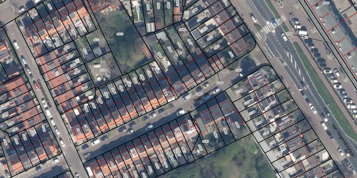 Rozenlaan 123 is gelegen op kadastraal perceel VDG00G2560. Deze kadastrale aanduiding is uniek en wordt gebruikt door het Kadaster om eigendomsrechten en andere zakelijke rechten vast te leggen. Het perceel maakt onderdeel uit van de kadastrale gemeente Vlaardingen.