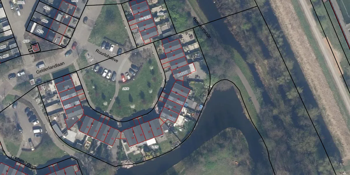 Het perceel waarop Ruurlohoeve 32 staat heeft een oppervlakte van 3480 m². Dit is een zeer groot perceel. De perceeloppervlakte wordt geregistreerd door het Kadaster. Gedetailleerde informatie over de maten van dit perceel kunt u vinden in het rapport Kadastrale kaart met maatvoering van Ruurlohoeve 32.