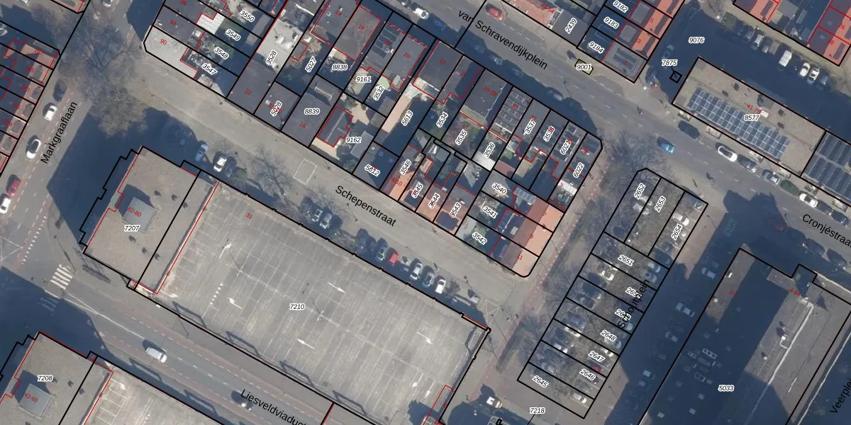 Het perceel waarop Schepenstraat 4 staat heeft een oppervlakte van 82 m². Dit is een klein perceel. De perceeloppervlakte wordt geregistreerd door het Kadaster. Gedetailleerde informatie over de maten van dit perceel kunt u vinden in het rapport Kadastrale kaart met maatvoering van Schepenstraat 4.