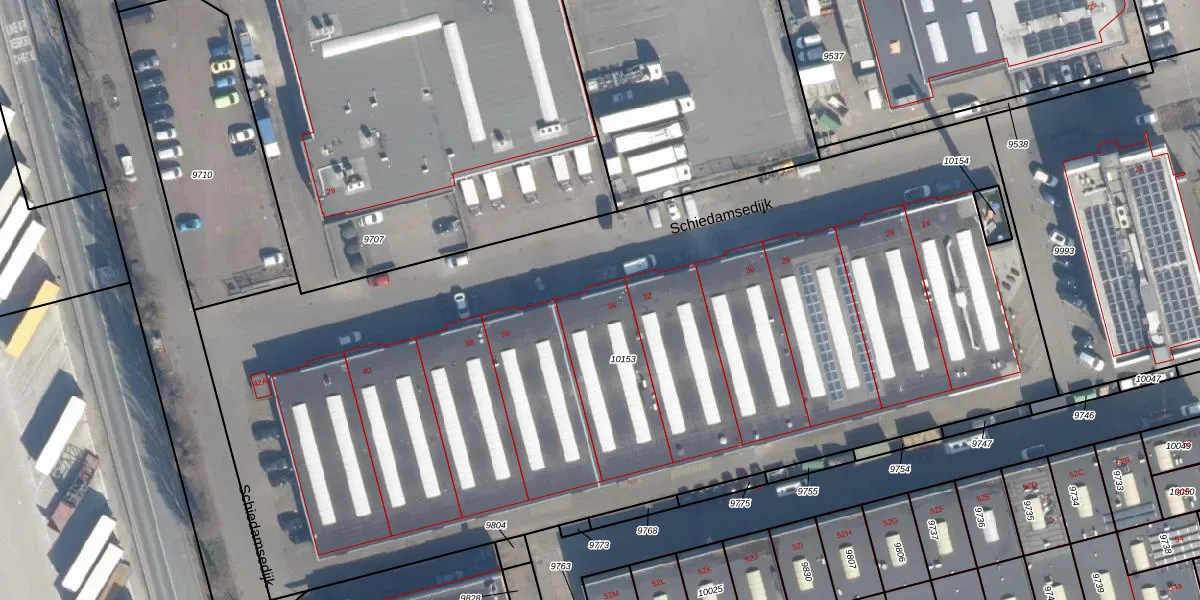 Het perceel waarop Schiedamsedijk 34 staat heeft een oppervlakte van 6524 m². Dit is een zeer groot perceel. De perceeloppervlakte wordt geregistreerd door het Kadaster. Gedetailleerde informatie over de maten van dit perceel kunt u vinden in het rapport Kadastrale kaart met maatvoering van Schiedamsedijk 34.