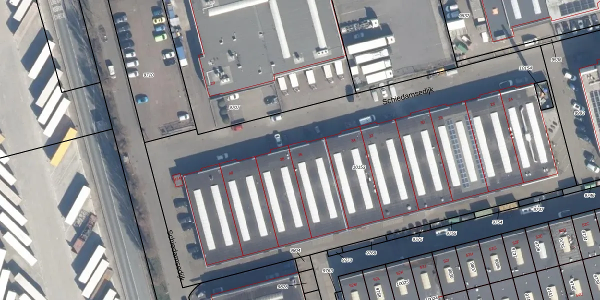 Het perceel waarop Schiedamsedijk 36 staat heeft een oppervlakte van 6524 m². Dit is een zeer groot perceel. De perceeloppervlakte wordt geregistreerd door het Kadaster. Gedetailleerde informatie over de maten van dit perceel kunt u vinden in het rapport Kadastrale kaart met maatvoering van Schiedamsedijk 36.