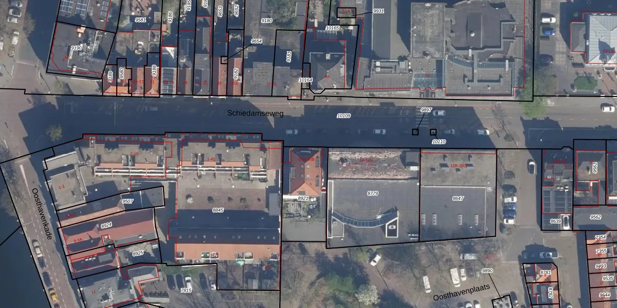 Het perceel waarop Schiedamseweg 10-B staat heeft een oppervlakte van 455 m². Dit is een groot perceel. De perceeloppervlakte wordt geregistreerd door het Kadaster. Gedetailleerde informatie over de maten van dit perceel kunt u vinden in het rapport Kadastrale kaart met maatvoering van Schiedamseweg 10-B.