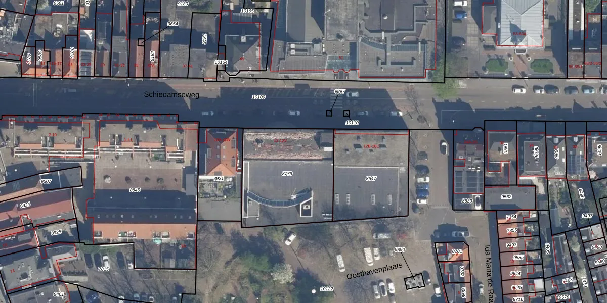 Het perceel waarop Schiedamseweg 12-U staat heeft een oppervlakte van 955 m². Dit is een groot perceel. De perceeloppervlakte wordt geregistreerd door het Kadaster. Gedetailleerde informatie over de maten van dit perceel kunt u vinden in het rapport Kadastrale kaart met maatvoering van Schiedamseweg 12-U.