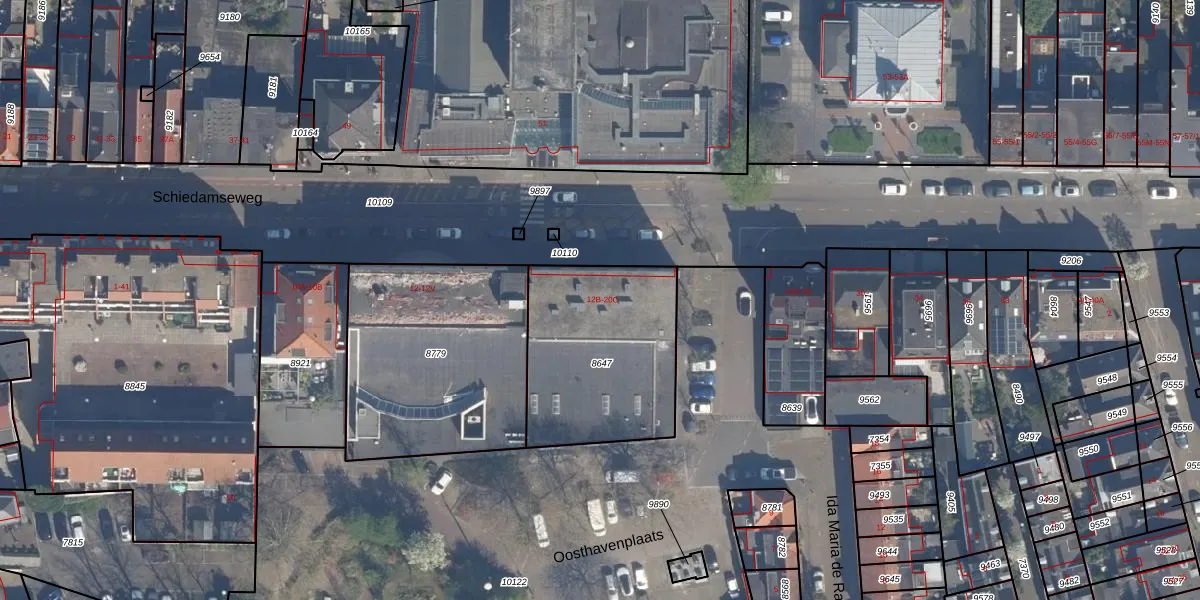 Het perceel waarop Schiedamseweg 16-C staat heeft een oppervlakte van 725 m². Dit is een groot perceel. De perceeloppervlakte wordt geregistreerd door het Kadaster. Gedetailleerde informatie over de maten van dit perceel kunt u vinden in het rapport Kadastrale kaart met maatvoering van Schiedamseweg 16-C.
