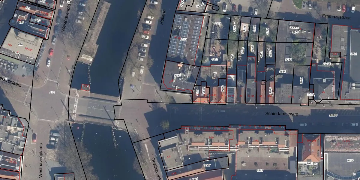 Het perceel waarop Schiedamseweg 3-A staat heeft een oppervlakte van 312 m². Dit is een groot perceel. De perceeloppervlakte wordt geregistreerd door het Kadaster. Gedetailleerde informatie over de maten van dit perceel kunt u vinden in het rapport Kadastrale kaart met maatvoering van Schiedamseweg 3-A.