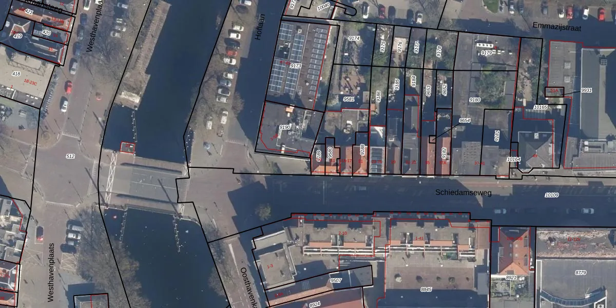 Het perceel waarop Schiedamseweg 5-A staat heeft een oppervlakte van 312 m². Dit is een groot perceel. De perceeloppervlakte wordt geregistreerd door het Kadaster. Gedetailleerde informatie over de maten van dit perceel kunt u vinden in het rapport Kadastrale kaart met maatvoering van Schiedamseweg 5-A.