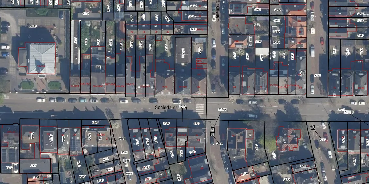 Schiedamseweg 59-A is gelegen op kadastraal perceel VDG00B9135. Deze kadastrale aanduiding is uniek en wordt gebruikt door het Kadaster om eigendomsrechten en andere zakelijke rechten vast te leggen. Het perceel maakt onderdeel uit van de kadastrale gemeente Vlaardingen.