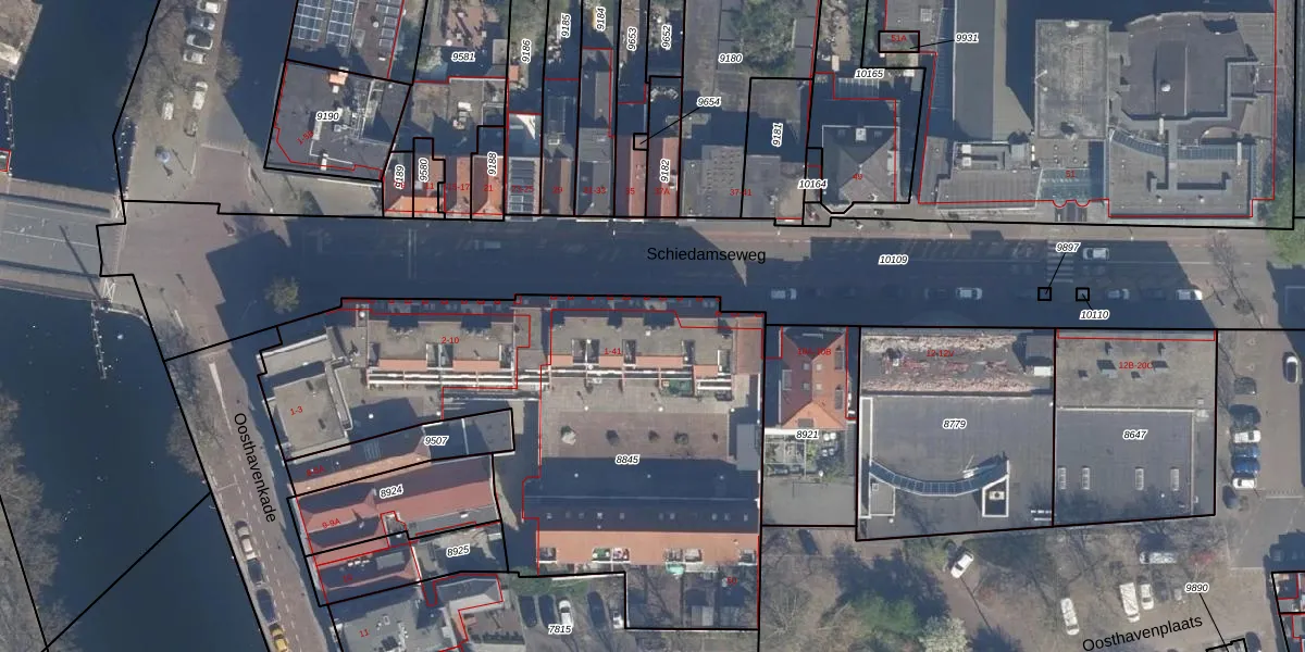 Schiedamseweg 8 is gelegen op kadastraal perceel VDG00B8845. Deze kadastrale aanduiding is uniek en wordt gebruikt door het Kadaster om eigendomsrechten en andere zakelijke rechten vast te leggen. Het perceel maakt onderdeel uit van de kadastrale gemeente Vlaardingen.