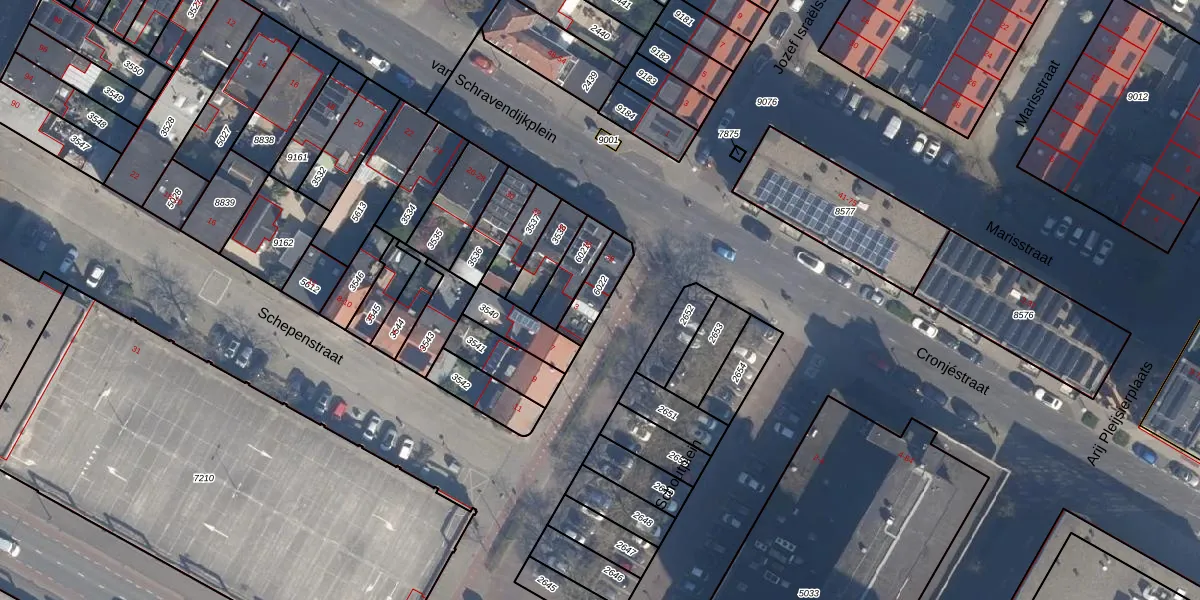 Het adres is gelegen op perceel 6022 in de sectie D en de kadastrale gemeente Vlaardingen. De kadastrale aanduiding is aldus VDG00-D-6022. Het perceel is kleiner dan gemiddeld in Vlaardingen. Het perceel is 94 m² groot, terwijl het gemiddelde ligt op 1372,52 m². De grootste perceeloppervlakte in de kadastrale gemeente is 1,02 km². De kleinste oppervlakte bedraagt 0 m². Er zijn 2 adressen aanwezig op het perceel. De huidige grenzen van het perceel zijn digitaal in de Basisregistratie Kadaster (BRK) geregistreerd op 28-04-2010.