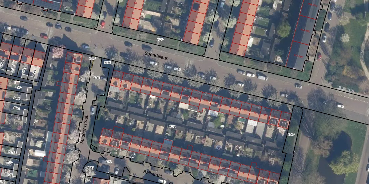 Soendalaan 105 is gelegen op kadastraal perceel VDG00D8971. Deze kadastrale aanduiding is uniek en wordt gebruikt door het Kadaster om eigendomsrechten en andere zakelijke rechten vast te leggen. Het perceel maakt onderdeel uit van de kadastrale gemeente Vlaardingen.