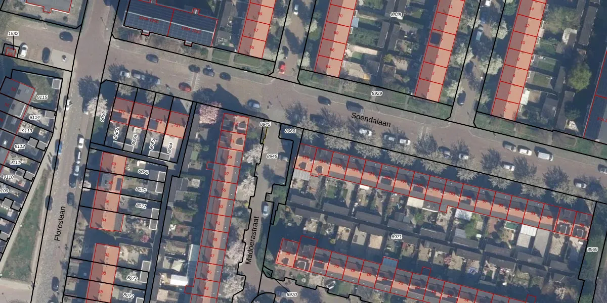Soendalaan 119 is gelegen op kadastraal perceel VDG00D8971. Deze kadastrale aanduiding is uniek en wordt gebruikt door het Kadaster om eigendomsrechten en andere zakelijke rechten vast te leggen. Het perceel maakt onderdeel uit van de kadastrale gemeente Vlaardingen.
