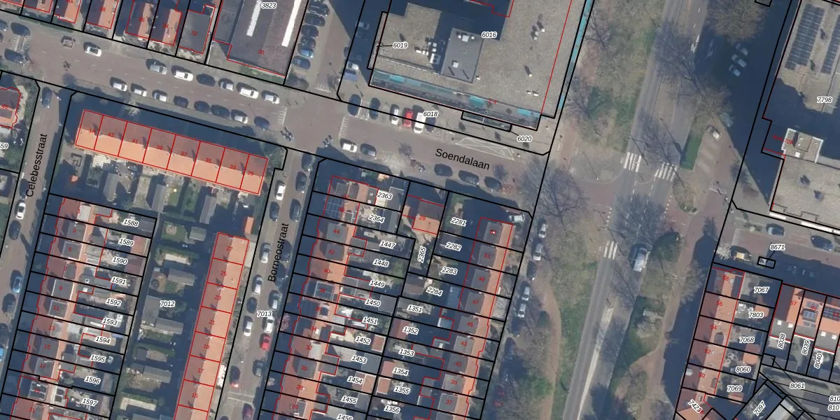 Gebruik de zoekbalk of klik op een perceel voor informatie over de adressen binnen dit perceel.