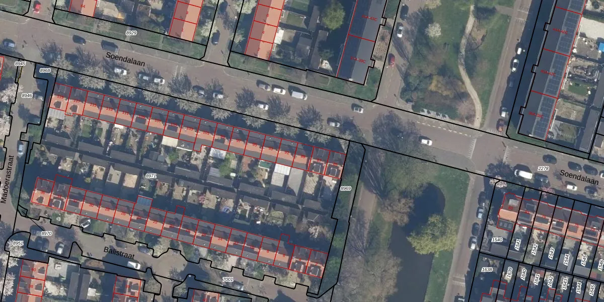 Soendalaan 89 is gelegen op kadastraal perceel VDG00D8971. Deze kadastrale aanduiding is uniek en wordt gebruikt door het Kadaster om eigendomsrechten en andere zakelijke rechten vast te leggen. Het perceel maakt onderdeel uit van de kadastrale gemeente Vlaardingen.