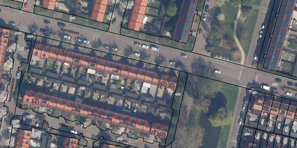 Soendalaan 91 is gelegen op kadastraal perceel VDG00D8971. Deze kadastrale aanduiding is uniek en wordt gebruikt door het Kadaster om eigendomsrechten en andere zakelijke rechten vast te leggen. Het perceel maakt onderdeel uit van de kadastrale gemeente Vlaardingen.